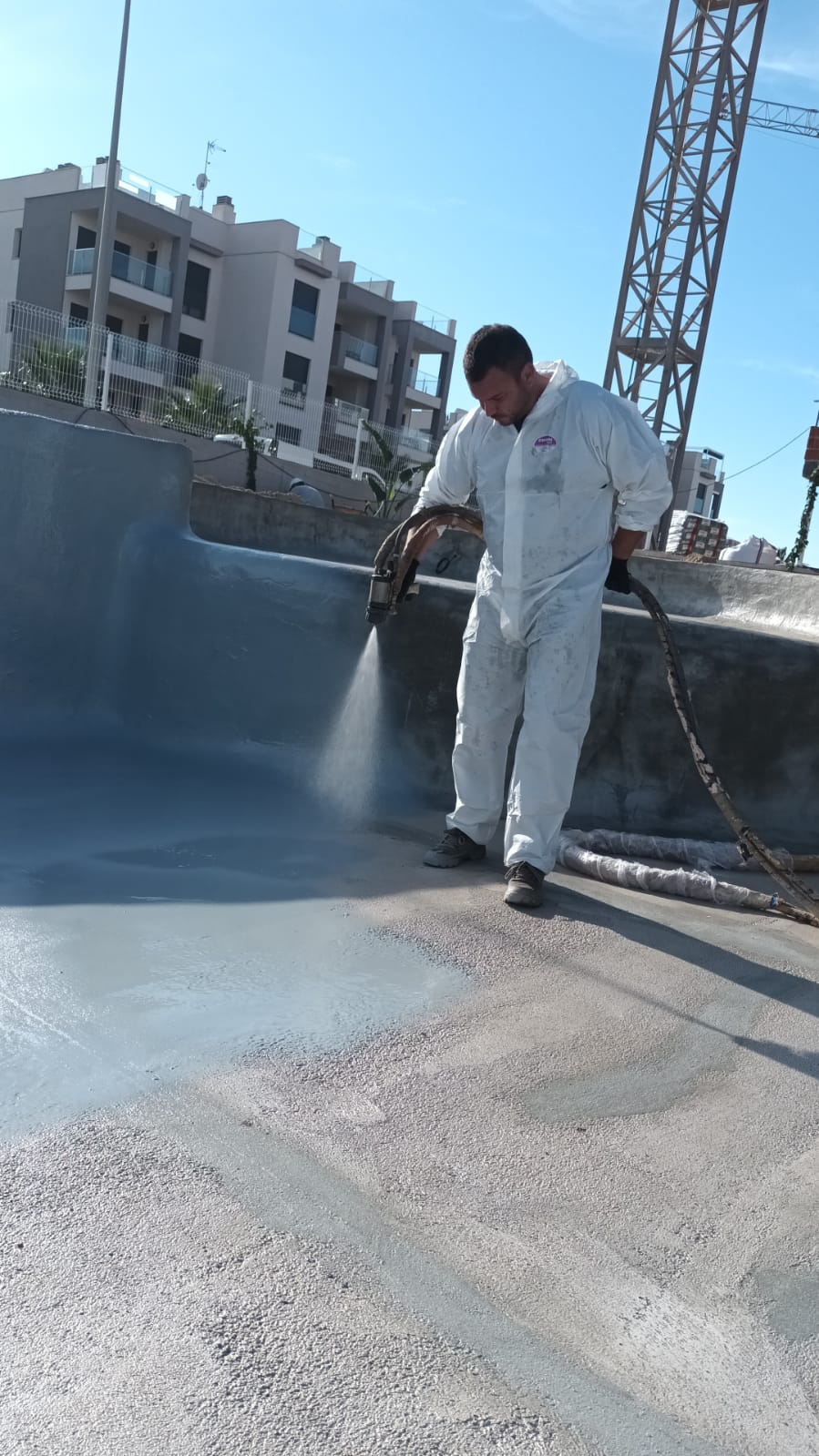 Es una Poliurea Térmica 100% sólidos de dos componentes a base de poliuretano. Es un excelente recubrimiento impermeable de larga duración para superficies de concreto, metal, madera, entre otros. En una sola pasada obtendrás 2-3 mm de espesor.